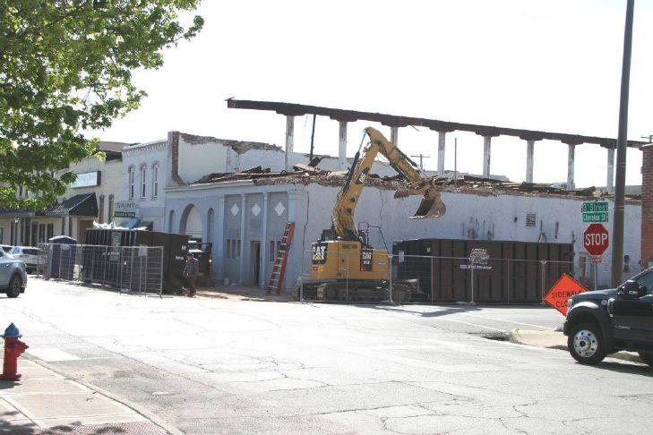 The demolition of what had been a three-story building progresses Tuesday in downtown Leavenworth. The building at Third and Cherokee streets is slowly being torn down. The demolition comes after an exterior wall partially collapsed in 2023. Photo Credit: John Richmeier